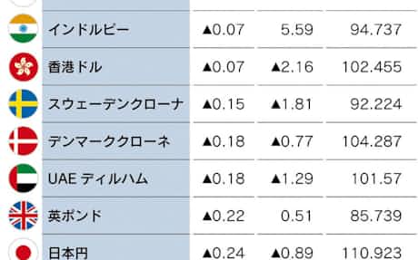 外国為替相場一覧表 外国為替相場(spot rate).